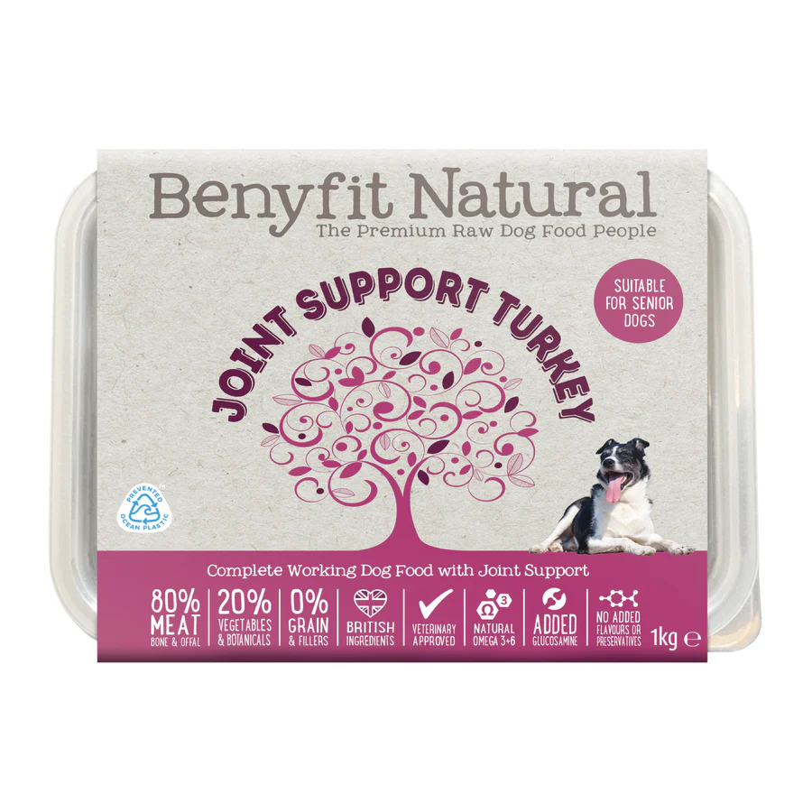 Our specially formulated joint support turkey recipe provides optimum health benefits for dogs that need a little extra support. Perfect for senior dogs, but also for any dog struggling with joint pain or stiffness to reduce inflammation and provide ongoing support.