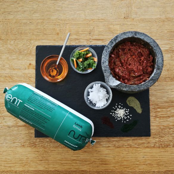 Nutriment’s raw lamb raw dog food is made from human-grade quality raw meat, nutritious vegetables and superfoods. Specially formulated to promote the health and happiness of dogs, our in-house canine nutritionists carefully select biologically appropriate ingredients which are natural for dogs to consume, great-tasting and easily digestible. Our lamb formula is free from fillers, grains and artificial ingredients, which are commonly found in commercial dog foods and can cause unpleasant side effects for dogs. The fresh raw lamb meat, offal and bone found in our lamb formula provides essential nutrition to support a multitude of bodily functions, as well as being supportive of the canine digestive system.