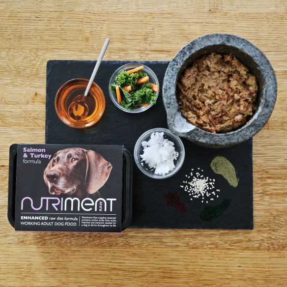 Nutriment’s salmon and turkey formula is packed full of protein, essential fatty acids and other nutrients which are vital for a healthy and happy dog. Fish is an important part of any complete, biologically appropriate diet for dogs, and our responsibly sourced salmon is a great option for adding variety to your dog’s diet. Formulated by our in-house canine nutritionists, our salmon formula contains carefully selected, biologically appropriate ingredients, which are free from grains, fillers and additives which can disrupt a dog’s digestive system. This great-tasting recipe will be thoroughly enjoyed by your dog, and their digestive, skin, coat, heart and brain health will be promoted due to the nutritional profile of the natural ingredients.