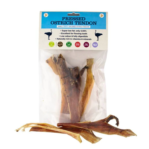Our Signature Pressed Tendon is 100% air dried Tendon with a fibrous texture which is great for dental hygiene. Ostrich is a novel protein source which is very low in fat & extremely high in lean protein, hypoallergenic, grain & gluten free. Low odour, non-greasy, no mess.